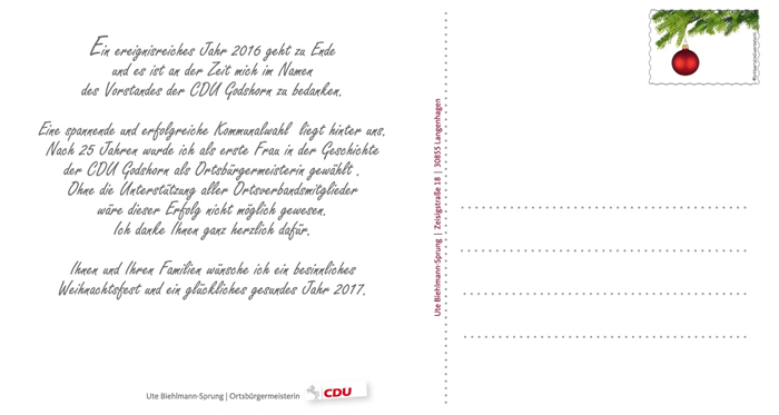 Weihnachtsgruß CDU Godshorn 2016